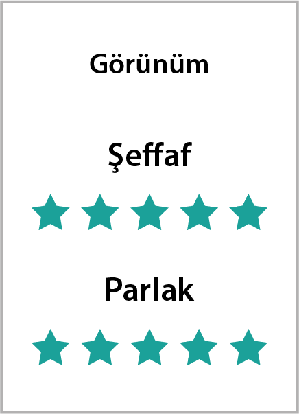 | Renk | ⭐️⭐️⭐️⭐️ = Şeffaf |