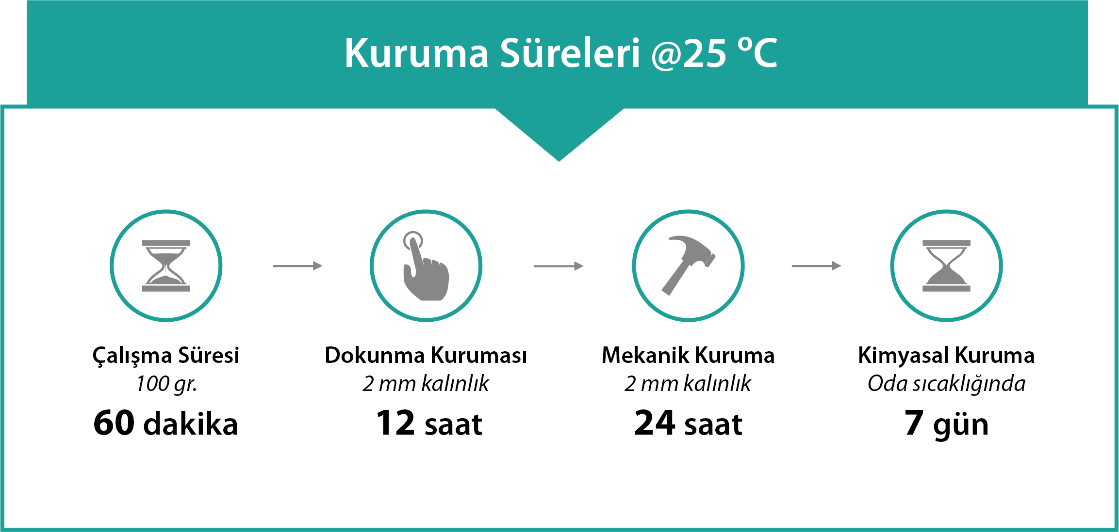 | 5 mm Kalınlık; Sert Kuruma Süresi (25°C) | ~ 14 saat |