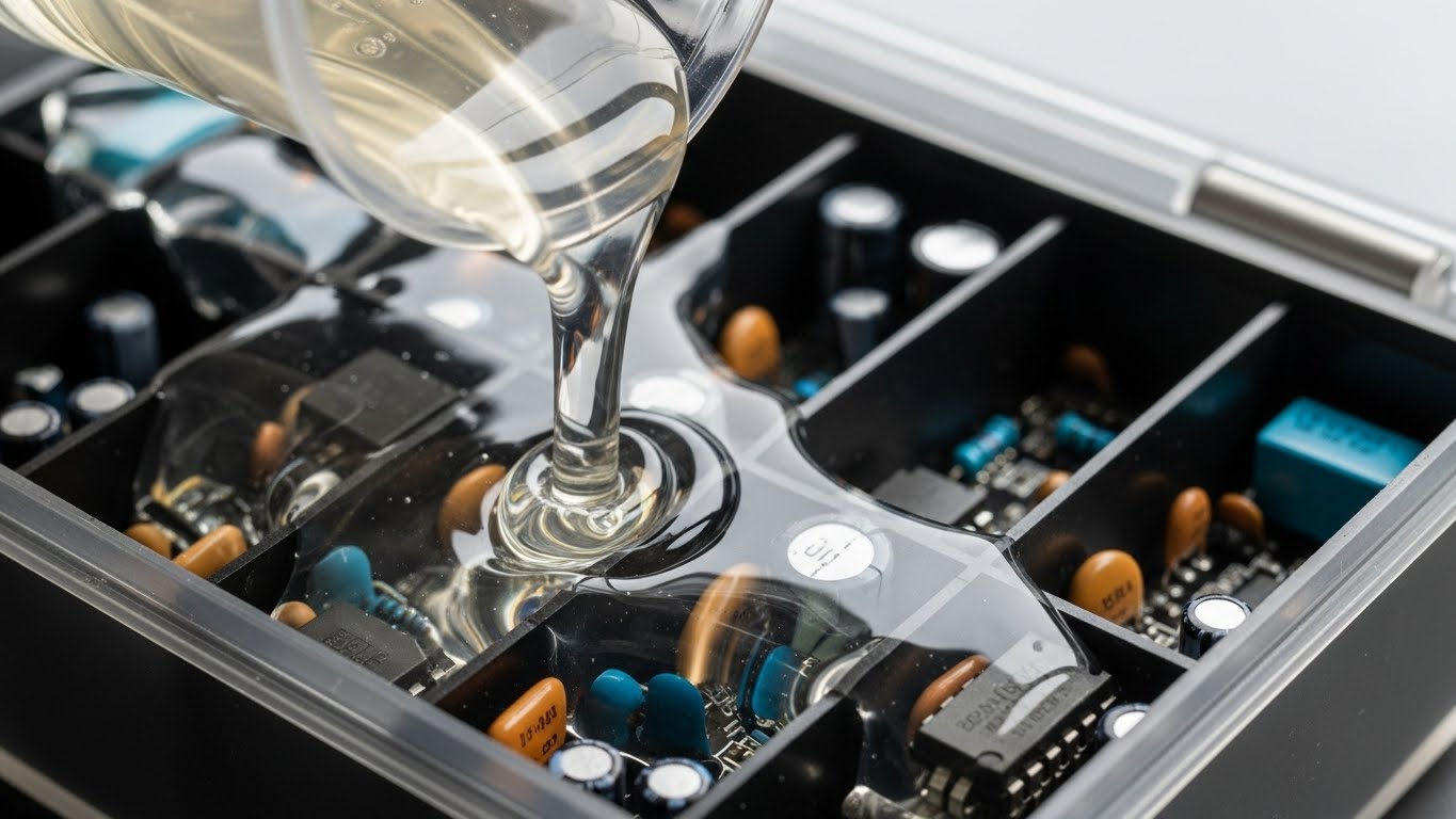Esnek yapılı titreşime dayanıklı ve elektriksel yalıtkan solventsiz döküm tipi şeffaf epoksi reçine.