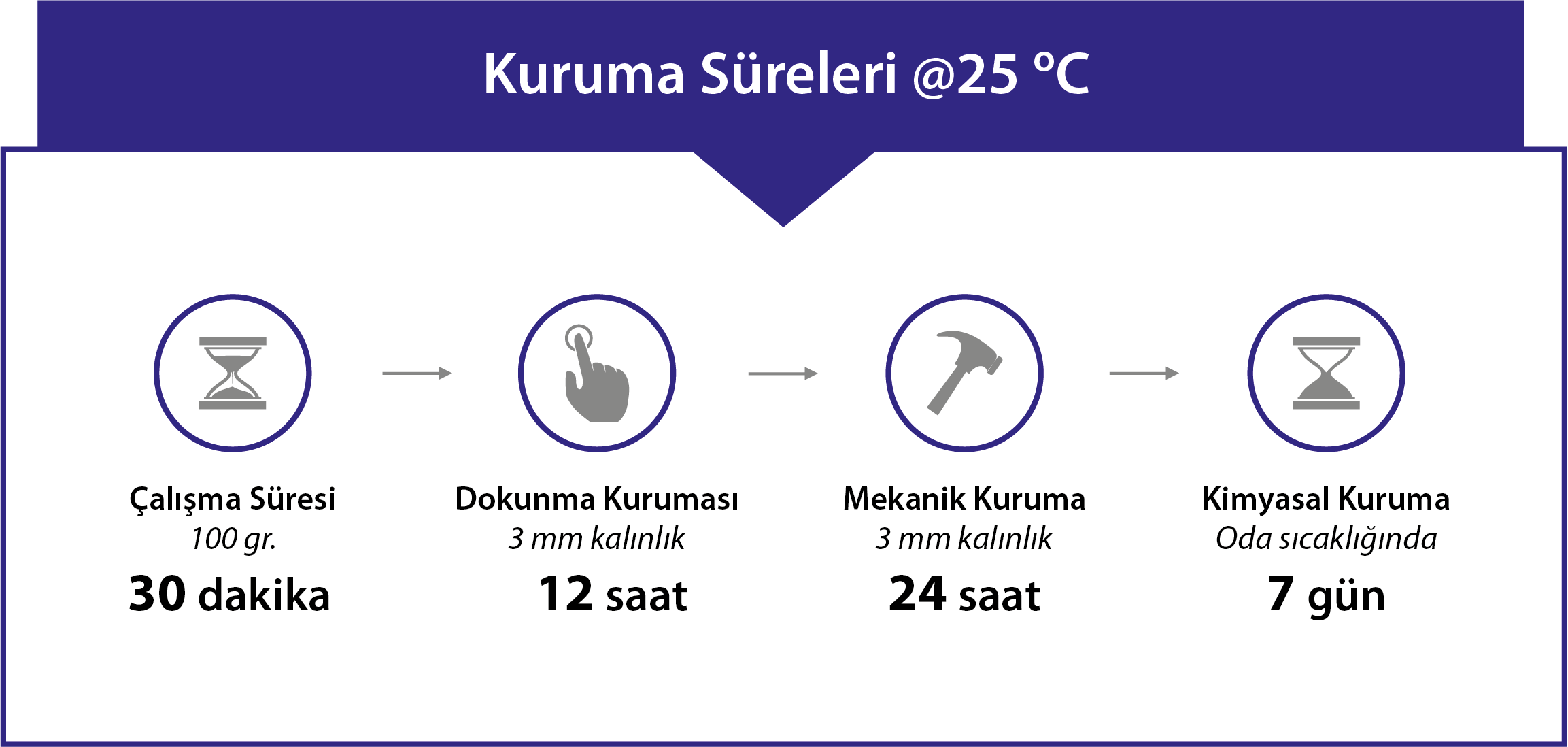 | 5 mm Kalınlık; Sert Kuruma Süresi (25°C) | ~ 24 saat |