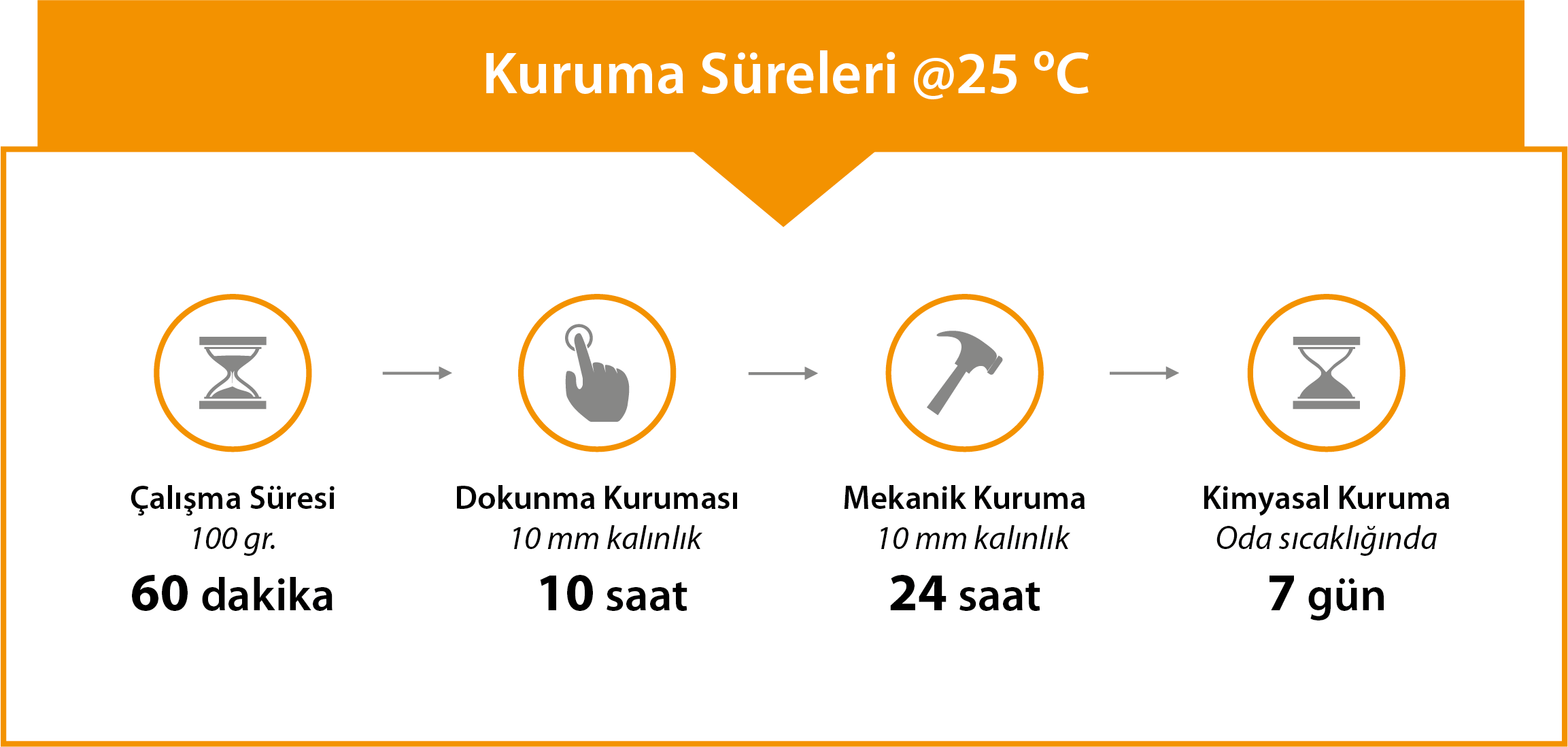 | 5 mm Kalınlık; Sert Kuruma Süresi (25°C) | ~ 36 saat |